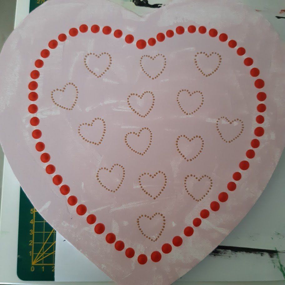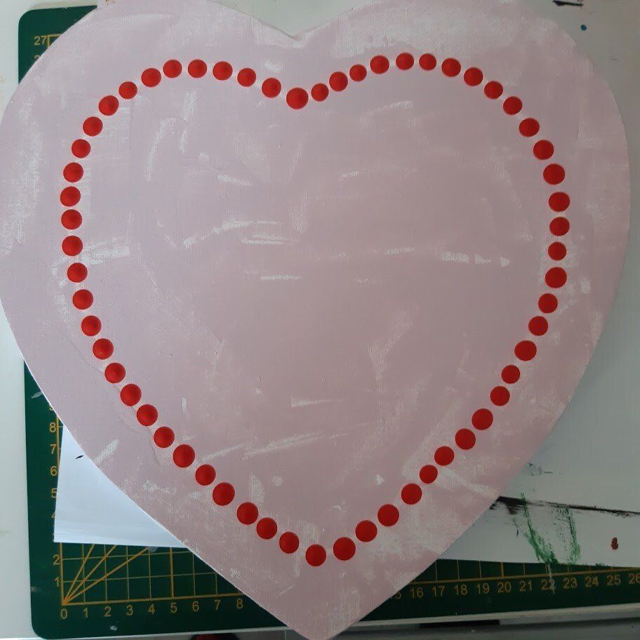 Over het werk. Je ziet de driee-eenheid, van geloof, liefde en hoop. Het anker zie je door het raam. De kleur van het anker heb ik zelf gemengd. Wilde een soort van koper krijgen. Daarvoor heb ik burning sienna met goud gemengd en een beetje wit om het lichter te krijgen. In het echt is het beter te zien.