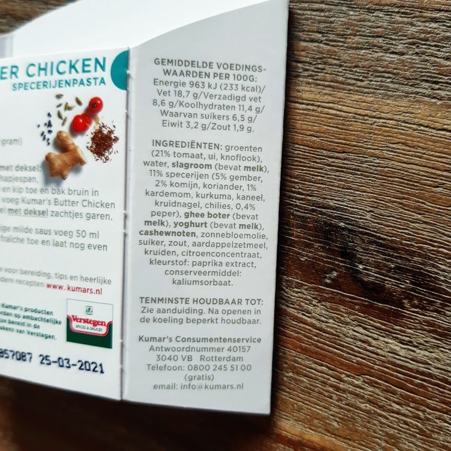 Op de verpakking van Kumars staan duidelijk de allergenen vermeld en de ingrediënten. Een duidelijk verhaal dus. Nog een voordeel van beide producten. Ze zijn geschikt voor 2 persoonshuishouden. Zoals ik schreef, er bleef niets over, dus geen verspilling.