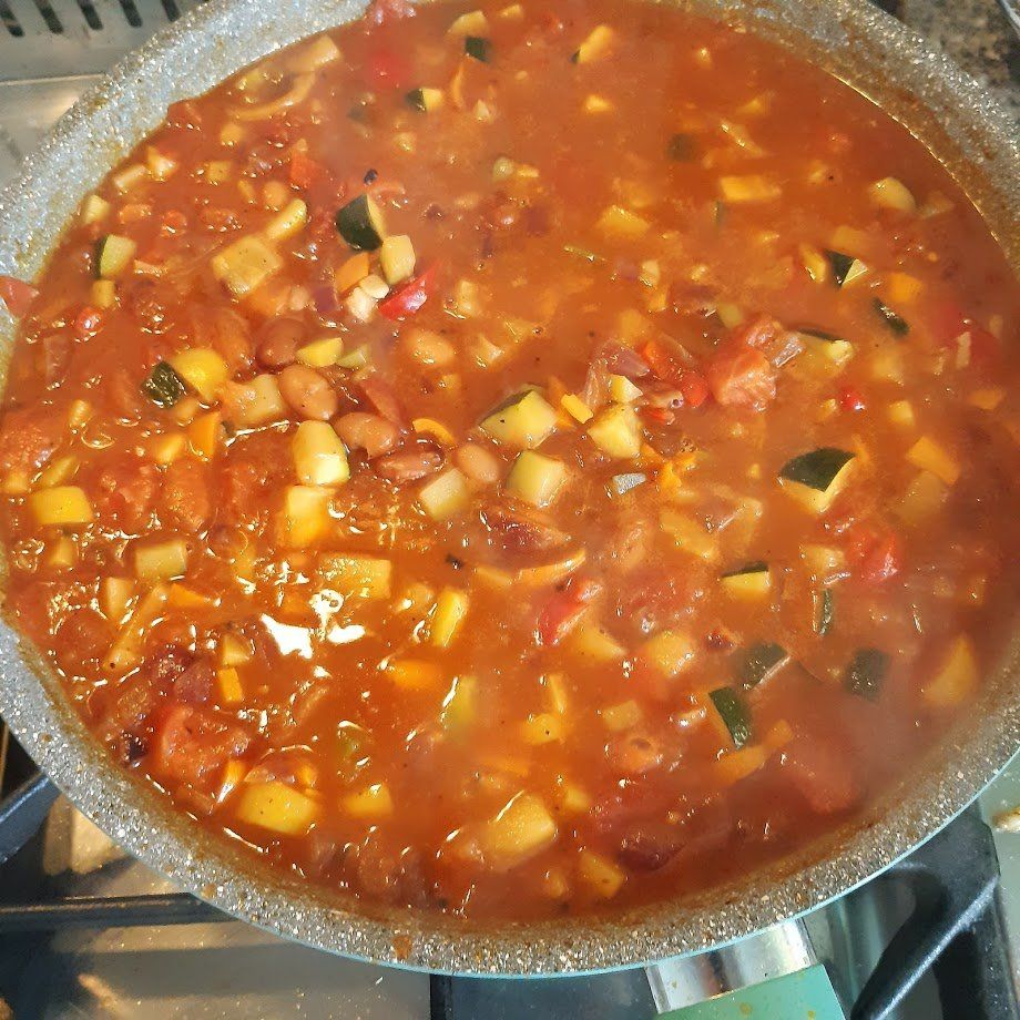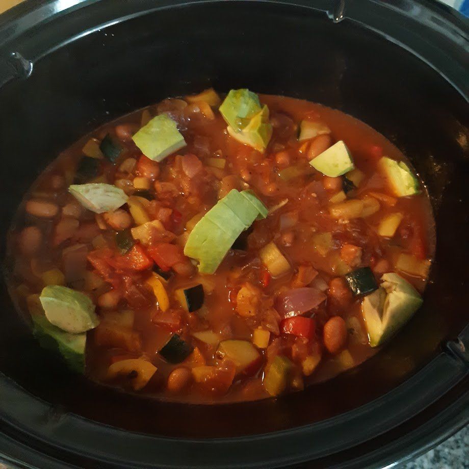 Ik had kippendijen zonder bot en vel gekocht. Biologische in de Lidl. In de koelkast nog een lading aan groente en ik dacht, daar kan ik mooi een chili con carne mee maken. Het smaakte zalig. Die slowcooker is, naast de airfryer, een geslaagde aanschaf. De oven kan het ook, maar de slowcooker kan het beter. ;-)