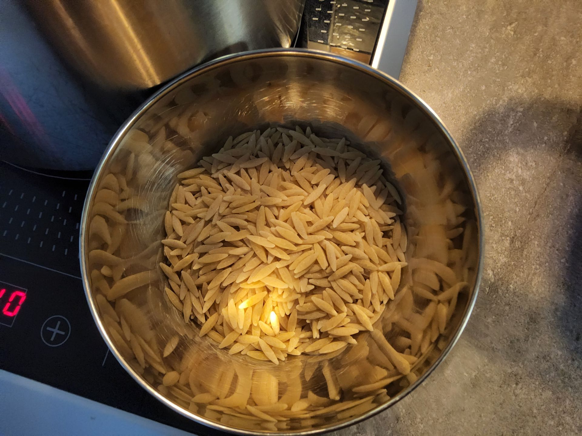 - Kook de pasta gaar volgens de gebruiksaanwijzing op de verpakking. Afgieten en laten staan.