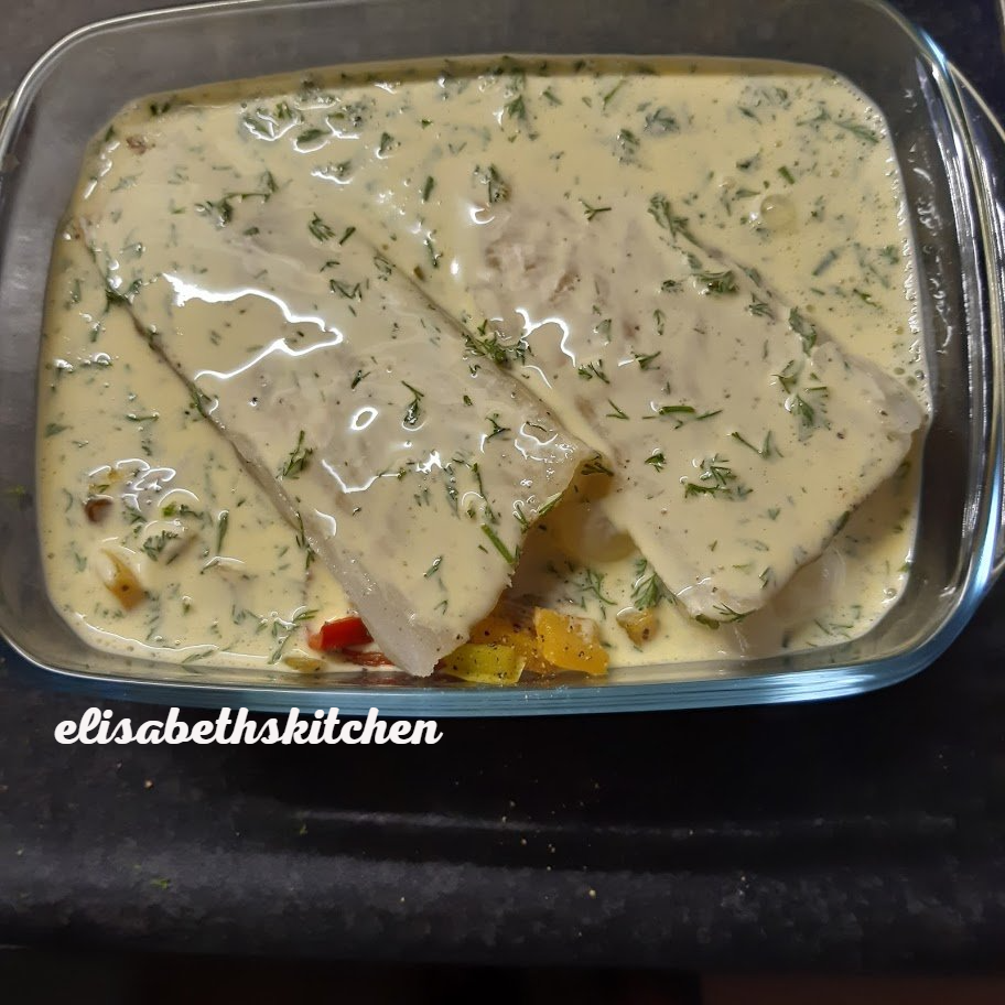 - Leg daarop de kabeljauwfilets.