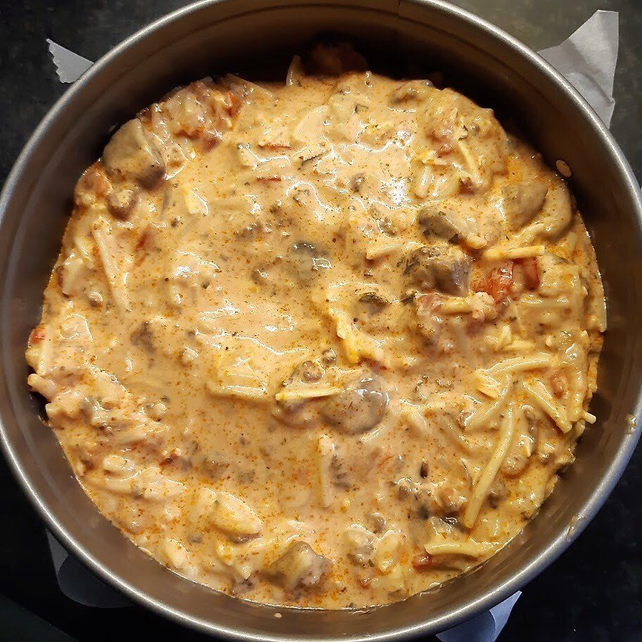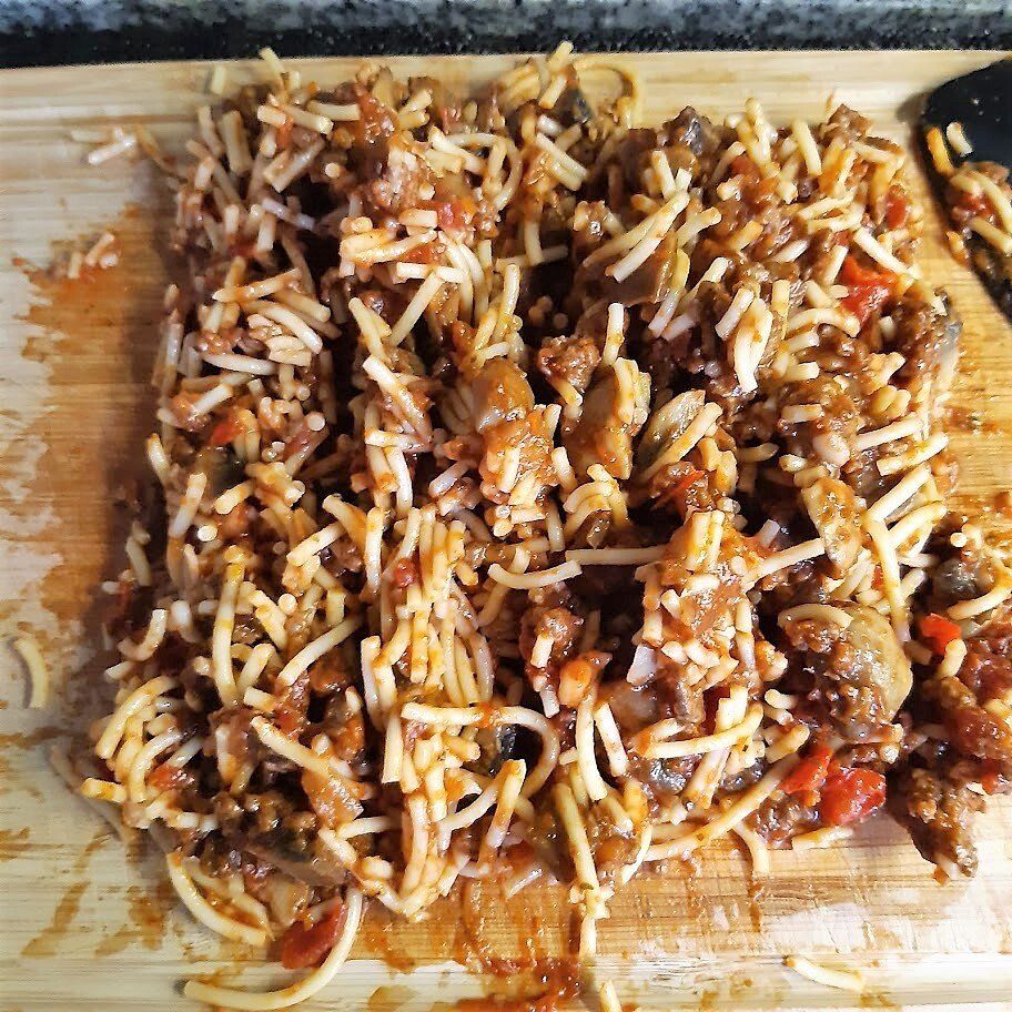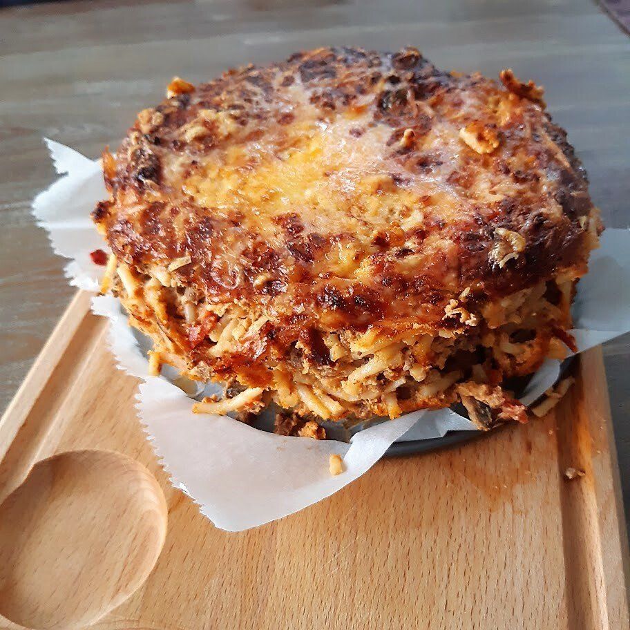 Dus ik kookte ook maar extra pasta. Want ik dacht, hier blijft genoeg van over om de dag erop een taart van te maken. Na het succes van de nasitaart, wilde ik een spaghettitaart of pastataart maken. En het lukte en viel in de smaak gelukkig.