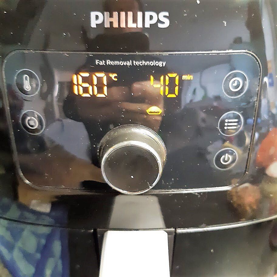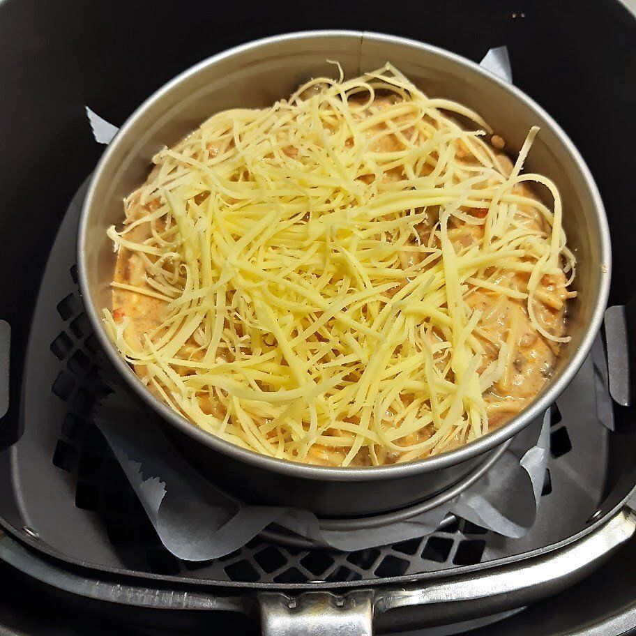 - Plaats het pizza-accessoire in je Airfryer en zet daarop de springvorm. Schakel de tijd en temperatuur in. Check zo'n 10 minuten voor het einde van de baktijd hoe je taart eruit ziet. Let op, het kan van binnen best nog een beetje vochtig zijn. Is niet erg, anders is de taart erg droog.