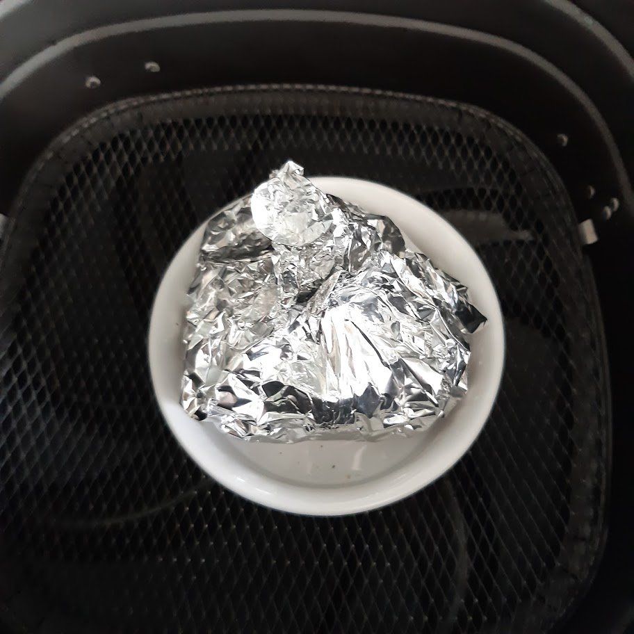 - Rooster de knoflook met het zout, peper en de olijfolie - zie de foto's op deze pagina.